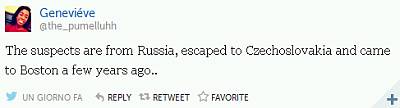 Ima i onih koji zaključuju da sada SAD treba ući u rat s Čehoslovačkom i da tu zemlju, grad ili što je već treba smjesta bombardirati. Konfuzija je postala tolika da je morao reagirati i češki veleposlanik u Sjedinjenim Državama, mučeći se objašnjavajući kako Češka i Čečenija nisu ista zemlja. „Češka se nalazi u srednjoj Europi, a Čečenija je dio Ruske federacije“, podučavao je veleposlanik, prisiljen da napominje kako je duboko potresen tragedijom koja se dogodila u Bostonu i da je Češka odani saveznik u borbi protiv terorizma...