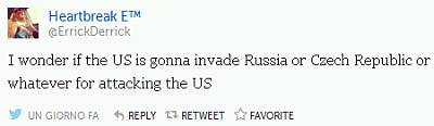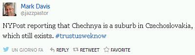 „Možda nikada nećemo saznati zašto su ovo učinili i je li to bio napad Čehoslovačke“, zaključio je jedan twitteraš, dok će drugi dodati da se radi o zemlji koja se zove „Czechnia“ (inače na engleskom se Čečenija piše Chechnya). Treći će pak i dalje držati da se radi o Čehoslovačkoj, jer je jedan od napadača bio dizajner za unutarnje uređenje iz Čehoslovačke. No, ima i onih koji smatraju da je odgovorna Češka. „Što je Amerika ikad učinila Republici Češkoj? I Gdje je uopće Republika Češka? Zabavite se s vragom teroristi!“, poručit će upućeniji twitteraš, dok će jedan kojem je zemljopisna karta velika enigma objaviti da NYP izvještava kako je Čečenija predgrađe Čehoslovačke.