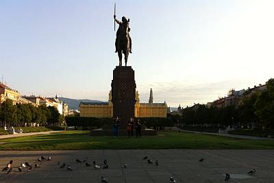 Čak je i kralj Tomislav jutros bio okrenut u istom smjeru, a na zagrebačkoj katedrali (u pozadini) i dalje stoje skele (FOTO: Lupiga.Com)