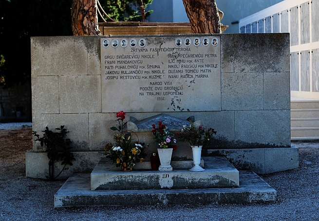 Ovaj spomenik podignut na viškom groblju čuva uspomenu na Višane koje su strijeljali fašisti. Kako smo vidjeli, u isto vrijeme na drugom kraju otoka, u Komiži, stoji ploča palim vojnicima fašističke NDH-a.