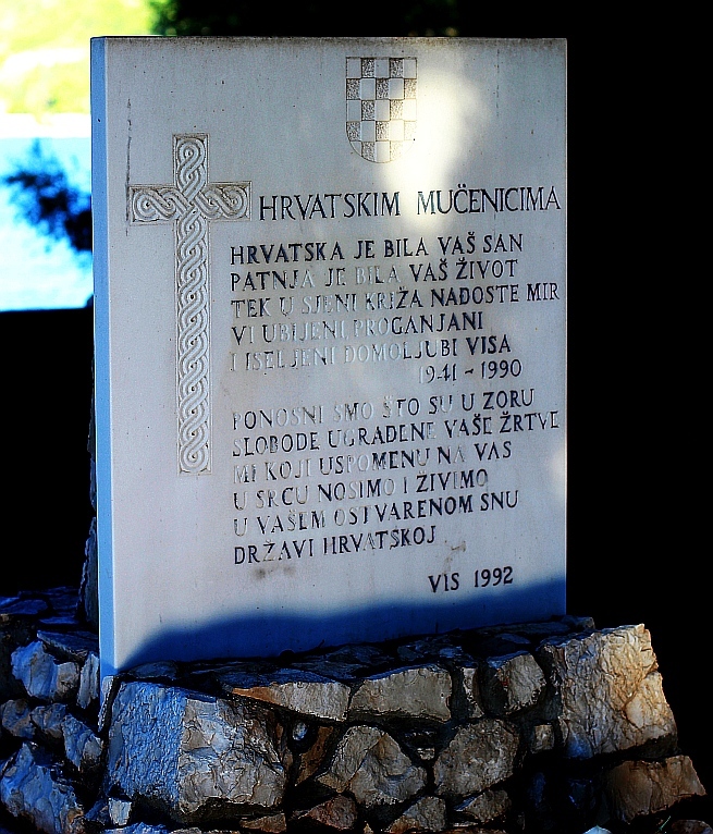 Ponovo viško groblje i spomenik novijeg datuma, posvećen "hrvatskim mučenicima", odnosno "ubijenim proganjanim i iseljenim domoljubima Visa." Spomenik je podignut 1992. godine, u vrijeme kad su drugi viški spomenici postali nepoćudni i kao takvi nestali pod udarcima čekića ili u eksplozijama dinamita. Novo vrijeme tražilo je glupe ljude i - nove spomenike.
