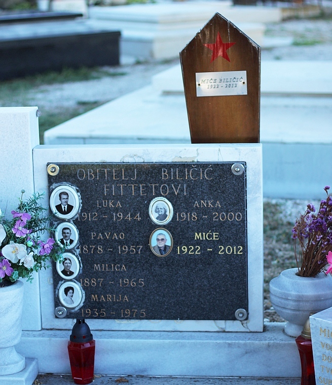 Na ovoj fotografiji pak vidimo spomenik braći Kuzmanić. Na komadu mramora s desne strane stoji zapisano: "Svojim sinovima prvoborcima - roditelji." Na jednom sličnom spomeniku u neposrednoj blizini netko je dlijetom brisao zvijezdu i nekoliko zapisanih riječi, od kojih se danas nazire još samo riječ - sloboda. Majstori je nisu dobro izbrisali.