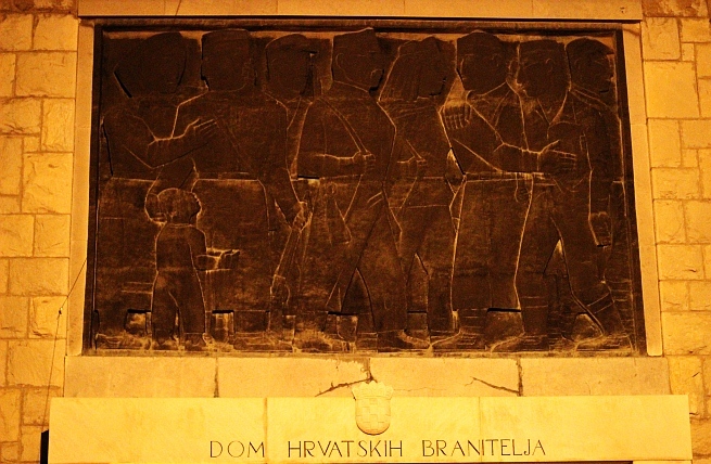 S Visa se prebacujemo na kontinent, u Kaštel Sućurac. Ovaj reljef nalazi se na pročelju Doma hrvatskih branitelja. Ne podsjeća li vas na one reljefe koji prikazuju partizanske borce? E pa nekad je ovaj reljef uistinu prikazivao partizane, a u to vrijeme Dom hrvatskih branitelja zvao se Dom palih boraca. Onda je došla demokracija. Danas reljef prikazuje branitelje.
