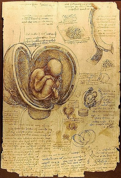 Stranica iz Leonardovog dnevnika koja pokazuje studiju fetusa u maternici. Nastala je oko 1510. godine, a danas se nalazi u Kraljevskoj knjižnici palače Windsor.