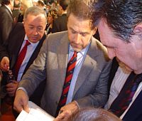 U glavnoj dvorani nađosmo se baš u momentu kada je uletio alfa i omega zagrebačke gradske politike Milan Bandić-Banda, s naramkom svježih rezultata iz Zagreba. Do ulaza ga je dopratio jedan od prvih suradnika Zvonimir Šoštar, gradski šef za zdravstvo, koji se u zadnje vrijeme proslavio smjenjivanjem ravnatelja bolnice Sv.Duh, Dalibora Krpana na pravdi Boga.