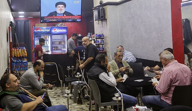 Pristaše Hezbolaha okupile su se kako bi putem video linka čule obraćanje svog vođe Hasana Nasralaha koji im je poručio da je premijer zatočen i prisiljen da podnese ostavku (FOTO: Hina/EPA/Nabil Mounzer)