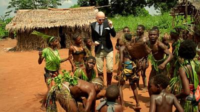 Autor u čizmama od tisuću i nešto eura posjećuje pigmejsko selo u kojem vlada potpuna ekstaza i trans, jer su ministrovi ljudi seljanima prije dolaska podijelili neograničene količine alkohola ne bi li bili što zabavniji (FOTO: Ambassador)