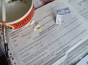 Ali dug tekst ni novine neće objaviti. Stari Oboista (jedna fotografija vrijedi za hiljadu riječi) dosjeti se da će biti mudro uslikati dokaze i činjenice. Odgurne od sebe flašu, čašu, pepeljaru, cigarete i daljinski i po stolu rasporedi rješenje, odsječak uplate i spisak prihoda i rashoda. Uzme mobitel i nakon nekoliko krivih pokušaja uključi kameru. Na papire, pored svake bitne činjenice, postavi kartončić s brojem, kao policija na mjestu zločinai. Škljoc. Zadovoljan, zavali se u fotelju, digne noge na dokazni materijal i zapali cigaru. Osjeti kako se opušta i kako mu se pritisak spušta.