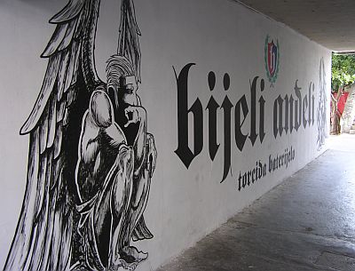 Golemi Hajdukov mural u podvožnjaku u Dubrovačkoj. Navodno je grad prepoznao vrijednost ruku mladića te im je dozvolio da legalno urese ovaj inače sivi zid.