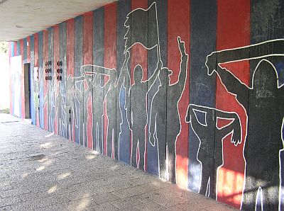Golemi mural, kojeg oskudne mogućnosti posuđenog digitalca nisu uspjele ugurati u jedan kadar, kaže: I dok sunce bude sjalo i dok bude bile boje Pujanke će volit samo ime tvoje.