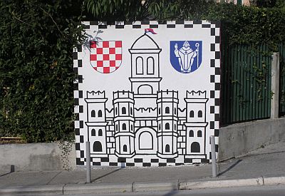 Jedan od brojnih grbova na vrhu Krstarice snimljen s kojeg kilometra zračne linije.