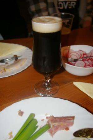 Lager, 4%, napravljen u veljači 2013. godine, dakle, klasičan Marzen, kako ga je opisao Mario. Mutno, žuto prema narandžastoj. Pjena kao da ju je najbolja majka na svijetu najuzornijem odlikašu pjenjačom satima tukla, dođe ti da se igraš njome. Okus gorkast, malo CO2, lagano i pitko, a tri sekunde nakon gutljaja slijedi grananje divnog hmeljnog nečega u sve pore gornjeg dijela prsiju. Kao kad dijete crta korijenje drveća – Mario, sjedi 5, htio sam izaći na cestu i zaprositi prvu snašu, ali je trebalo probati i tamno.