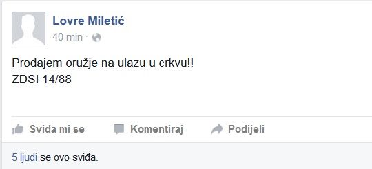 Pa se tako Mandurić na svom Facebook profilu iščuđava građanima, koji su se okupili ispred crkve prosvjedujući protiv molitve za ustaškog poglavnika.