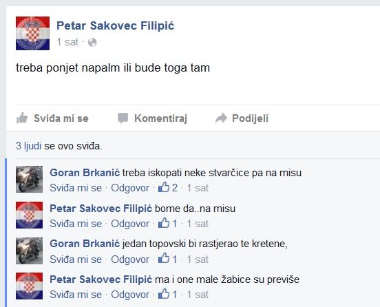 Međutim, ima i onih koji prijete i pozivaju na nasilje, čak i na oružje. Dakako, radi se o "domoljubima", koji rado ističu bijelo-crvena polja na profilnim fotografijama. Nepismena fejsbučka bojna (domoljuba, naravno) u prvim je satima nakon objave događaja dosegla svoj maksimum "duhovitosti" psovkama i prijetnjama osobama koje će se eventualno pojaviti na misi. To bi bilo kudikamo smješnije da se prije dva dana nije dogodio napad na antifašiste. Ukoliko do napada dođe, ovaj eksperiment bi mogao polučiti dvostruki neuspjeh.
