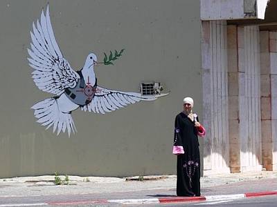 Palestinski geto, golubica mira s pancirkom i snajperskim nišanom na sebi