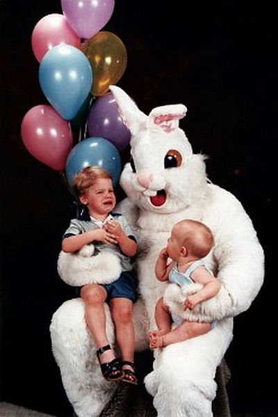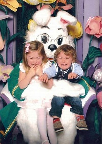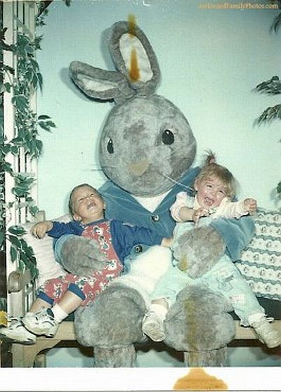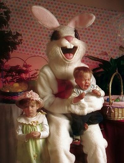 Da bi shoping centri bolje radili, na zapadu su odavno Uskrs pretvorili u Božić, a zeca u Djeda Mraza i obrnuto. Na fotografijama koje predstavljamo vidjet ćete da se djeca užasavaju od sjedenja u krilu gigantskih zečeva, jednako kao što im nije milo kad ih roditelji nasade Djeda Mrazu na koljeno. Osim muka po najmlađima, vidjet ćete i nekoliko uskršnjih obiteljskih fotografija koje izazivaju smijeh i nevjericu. Fotografije su sa awkwardfamilyphotos.com, britanske internet stranice koja se bavi isključivo ovjekovječenim familijarnim trenucima.