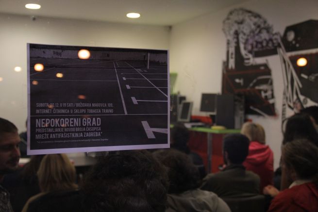 Mirna Šimat i Katerina Duda iz Nepokorenog grada predstavile su, u društvu gostiju, novi broj tog časopisa pred novozagrebačkom publikom okupljenom u internet čitaonici Tobacco u kvartu Travno. Na predstavljanju se tako iz prve ruke moglo čuti kroničara razotkrivanja ustašluka na hr.wikipediji, njihovog bivšeg suradnika koji je za NG pisao pod pseudonimom DobarSkroz, ali i povjesničara umjetnosti Vladimira Tatomira, koji je govorio o urbanizmu Novog Zagreba.