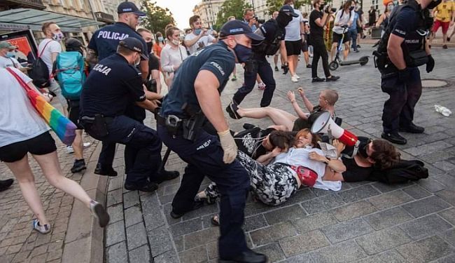 U Varšavi je ljetos policija tukla i hapsila zbog zastava duginih boja koje su LGBT aktivisti izvjesili na spomenike Isusu Kristu, astronomu Koperniku, državniku Jozefu Pilsudskom i varšavskoj sireni u znak protesta protiv homofobije i mržnje. Hapšenje je pravdano „povredama vjerskih osjećaja i skrnavljenjem spomenika“. New York Times je tada napisao da je Poljska u kulturnom ratu koji ju podijelio više nego ikad od kraja komunističke vladavine.