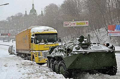Ukoliko mislite da je ovo što pada vani smak svijeta i da nas je mećava naprosto zatrpala, onda sigurno niste vidjeli kako je jučer izgledao ukrajinski Kijev. Ova tromilijunska metropola, naime, jednostavno je zametena snijegom, a mediji izvještavaju o najvećoj snježnoj oluji posljednjih stotinu godina. Građani se žale da nema kruha, ceste su zakrčene, a osim automobila u snijegu su zapeli i vlakovi. Fotografije koje dolaze iz Kijeva su naprosto nevjerojatne