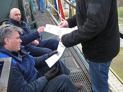 Radnici na vrhu ugašene peći (FOTO: Crvena akcija)