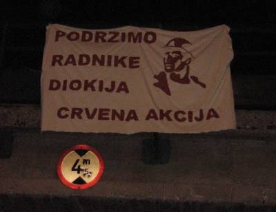 Petorica očajnih radnika Diokija popela su se u noći s ponedjeljka na utorak na vrh jedne od peći u ovom velikom kompleksu i odbijaju uzimati hranu i piće u znak protesta zbog neisplate šest plaća. Istodobno, njihovi kolege okupljeni u Stožer za obranu Diokija blokirali su ulaz u upravnu zgradu. Neposredni povod za ovaj potez bila su ponovno iznevjerena obećanja vlade da će pomoći u rješavanju problema u kojima se našla ova firma.
