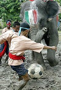 Klađenje na rezultate tekmi je ilegalno i za vrijeme Euro 2004 naglo je poraslo i dostiglo svoj vrhunac. Stoga su tajlandske vlasti donijele odluku da svim uhićenim "kladioničarima" očitaju bukvicu. Itekakvu bukvicu. Naime, organizirana je utakmica između "kladioničara" iz zatvora Ayuthaya i slonova. Da, dobro ste pročitali - slonova. Nathee Chitsawang, generalni direktor tajlandskih zatvora je izjavio: "Očekujemo da će stanovništvo podržati ovu ideju - nogomet služi za zabavu i igru, a ne za klađenje." Meč je vidjelo preko dvije stotine "gledatelja-zatvorenika" (od 1 500 koliko ih se nalazi u zatvoru) na vrlo blatnjavom terenu. Kako ne bi došlo do većih belaja, slonovi su slušali komande svojih jahača. Zbog fer pleja, igralo se "malo većom" loptom nego inače. Poveli su "kladioničari" da bi pred sam kraj utakmice slonovske snage uspjele doći do izražaja i poravnati rezultat, koji je nakon 90 minuta glasio 5:5.
