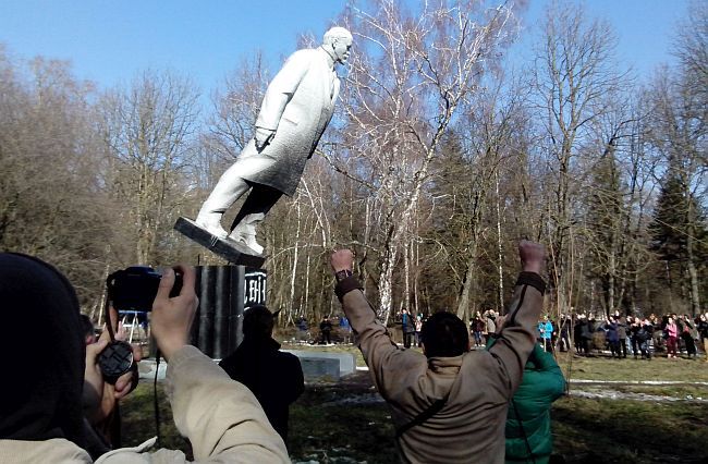 Rušenje Lenjinovog spomenika u Hmeljnickom (FOTO: Volodimir D./wikimedia.commons)