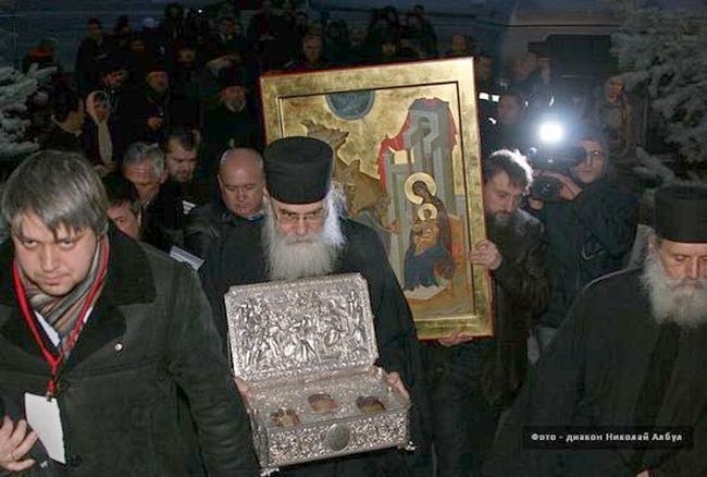 Prema strogo utvrđenom rasporedu relikvija je trebala biti izložena u Moskvi, Petrogradu, Minsku i Kijevu. U Kijevu je iznenada donesena odluka da se "Darovi mudraca" izlože i na Krimu, u Sevastopolju i Simferopolju. Na tome je, kako je rekao monah Nikodim iz manastira Svetog Pavla na Atosu, inzistirao i sam ruski patrijarh Kiril. U prvim danima veljače na Krim su otputovali "Darovi mudraca", oligarh Malofejev i Igor Girkin, a tamo će se naći s dva ruska političara, Olegom Lebedevom i Dmitrijem Sablinom. U tom trenutku jedan je aktualni, a drugi bivši zastupnik ruske Dume iz redova Putinove Jedinstvene Rusije.