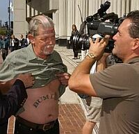 kama, sad već legendarnog "Bumfightsa". Oni su izjavili kako su tvorci bizarnog showa iskoristili njihov alkoholizam i nagovorili ih da se zabijaju glavama u čelična vrata, kao i da si istetoviraju boldanim slovima "Bumfights", kao i još štošta. Tako na slici možete vidjeti žrtvu kojem je na glavi istetovirano "Bumfight", a na trbuhu "Bumlife". Jedan od beskućnika svoju lakomost objašnjava vrlo jednostavnim riječima: