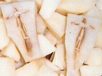 Božji znak smjesta su zamrznuli i odmah pozvali svoje vjernike da im pokažu Isusa. Sve je potom postala legenda. Američke televizijske postaje opkolile su njihovu kuću, a krumpir salata je, ne sumnjate, bila bolja nego ikada do sada. Za kraj valja još samo pretpostaviti kako bi se božji znak, odnosno krumpir, uskoro mogao pronaći i na kakvoj aukciji, kao što je to prije nekoliko godina bio slučaj sa sendvičem na kojem se našao lik djevice Marije. Taj je, naime, tostirani sendvič, prodan za nevjerojatnih 28.000 dolara, također u Sjedinjenim Državama. Što je ipak to za takav znak s neba ...