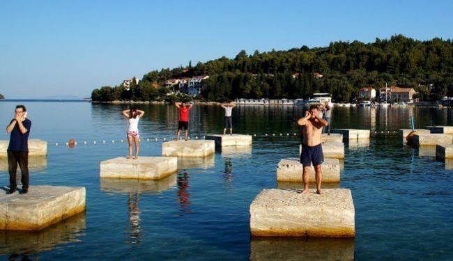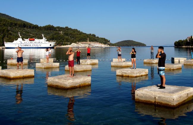 Gradnja je, dakle, već počela, u more su postavljeni golemi betonski blokovi, kako bi se podignuo objekt koji bi ležao na samom moru. Na blokovima se već ovog ljeta odigrao prosvjed, odnosno performans, prilikom kojeg su Velolučani stali na te pontone i rukama, kako tko, prekrio oči, uši ili usta. Bila je to jasna poruka – „niti vidim, niti čujem, niti govorim“.