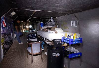 Steven i njegova djevojka Kathryn, koje je pronašao novinar Daily Maila, u tunelu su zauzeli svojih stotinjak kvadrata životnog prostora. Baš kao i vi u svom domu, i oni na zidovima imaju slike i police za knjige. Tijekom pet godina u podzemlju napravili su što i svi mi radimo. Simuliraju život. Od odbačenog uredskog automata za vodu napravili su tuš, krevet su preko noći dovukli s „površine“ jer kažu, ne vole da ih tamo gore vide.