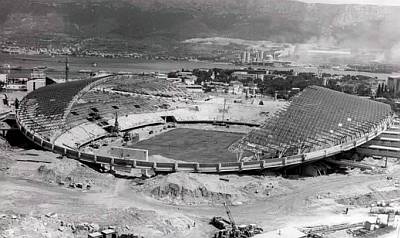 Nedugo nakon što je ova fotografija snimljena prionulo se na gradnju stadiona kojeg će se i trideset godina kasnije uvrštavati na liste najljepših svjetskih stadiona. Stariji Splićani prisjetit će se kako se na tom mjestu, osim vrtova gdje se sadilo paradajz, luk i papriku, nalazilo ljekovito blato. Sam povod za gradnju stadiona i konačno preseljenje Hajduka s kultnog Starog placa, bile su Mediteranske igre, čiju je organizaciju 1979. godine dobio grad Split.