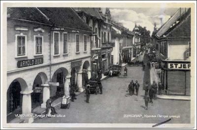 Vukovar, Ulica kralja Petra ("Imam ovaku sliku iz 1915 godine i tada se ulica zvala FranjeJosipa. Znači ovo je posle I sv. rata. Za vreme kralja Petra. Mislim da je oko 1935. Sad je dr. Franje Tuđmana." forum - vukovarac.net)
