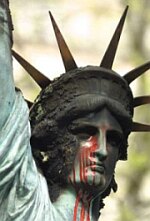 da ga je na to natjerao netko uz pomoć crvenog autolaka kojeg je nesretnom kipu pošpricao ispod desnog oka, i to pod okriljem noći s utorka na srijedu. No, nije ni to sve, jer su vandali ili vandal odlučili kipu i malo potpaliti okrunjenu glavu, što je rezultiralo "sitnom" promjenom boje glave. Inače ova dva i pol metra visoka statua postavljena je 2000. godine, a ne znam treba li naglasiti kako su Ameri ovu nepodobštinu pripisali rastućim tenzijama između Francuske i SAD-a od kada je Francuska odbila podržati SAD u Iračkom ratu. Dakle, čini se kako misle da nije riječ o izoliranom činu i kako to nema neke pretjerane veze s logikom!