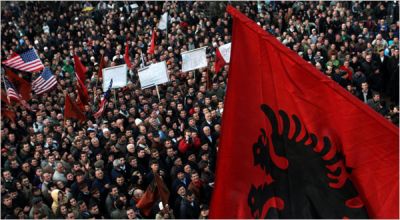 Pristalice pokreta Vetëvendosje na demonstracijama