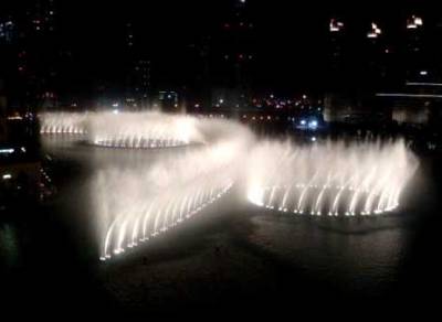 Ovi su se malo štrecnuli, napokon, nije lijepo trunuti u pustinji, ali im je pred očima zabljesnulo 218 milijuna dolara koje su Arapi pred njih bacili te su se dali na posao. U podnožju najvišeg svjetskog nebodera, Burj Khalifa u Dubaiju projektirali su fontanu osvijetljenu s 6.600 lampica, 25 projektora u boji te ju oboružali pumpama koje pljucaju morsku vodu 150 metara u visinu.