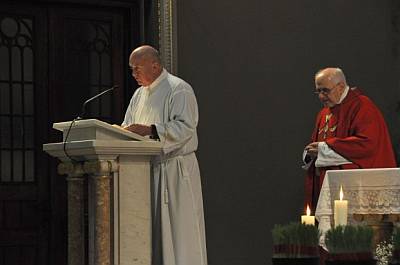 "Braćo i sestre, okupili smo se danas na misi za doktora Antu Pavelića, osnivača i poglavnika Nezavisne Države Hrvatske...", započeo je misu pred pristojno ispunjenom crkvom umirovljeni kanonik Stanislav Kos. S njegove lijeve i desne strane stajala su dva Isusovca u nešto manje raskošnijim haljama.