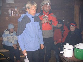 Vrijeme je u ovom slučaju stvarno nije bilo zabrinjavajući faktor jer su staze izvrsno označene, a i sva je potrebna oprema za planinarenje po mraku bila s nama, zajedno s dobrom atmosferom. Stigli smo na vrh taman na vrijeme za uživanje u zalasku sunca, tu su pale i nezaobilazne fotke koje naravno nikad nisu jednako lijepe kao original, ali nas tješi da trenutak ipak nije prošao nezabilježen. Spuštamo se u sklonište podno vrha Bjelolasice gdje pokušavamo zapaliti peć ostacima vlažnih drva i novina. Zadaća nije bila nimalo laka, naime dimnjak je bio zatrpan snijegom a većina drva za potpalu trula, no znalačke ruke i velebitaški duh nisu nam dozvoljavali da odustanemo te je vatra upaljena. Nadopunili smo zalihe vode snijegom koji smo otopili u loncu na vatri i krećemo natrag u Ratkovo skloniše gdje ostatak ekipe (nadamo se), priprema roštilj.