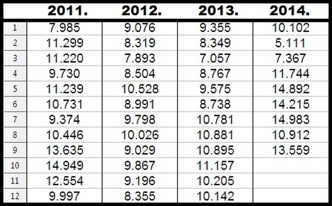 Kretanje broja obrisanih s liste nezaposlenih od 2011. godine do rujna 2014. (IZVOR: Mjesečni statistički bilteni HZZ-a)