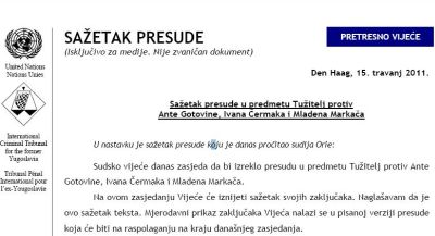 Sažetak presude u predmetu Tužitelj protiv Ante Gotovine, Ivana Čermaka i Mladena Markača
