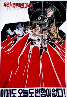 Situacija u Koreji se ne smiruje, a pretpostavke da Sjeverna Koreja i njezin Dragi Vođa imaju nuklearno oružje zastrašujuće su za cijeli svijet. Dok Amerikanci i Južnokorejanci spremaju nove zajedničke vojne vježbe, Sjeverna Koreja mobilizira stanovništvo spremajući ga za rat. Doduše, nije to ništa neobično, jer s vođama poput Dragog Vođe uvijek se spremate za neki rat. Na ovom mjestu donosimo propagandne postere, koji za cilj imaju raspirivanje mržnje Vođinih sljedbenika prema neprijateljima, prije svega SAD-u
