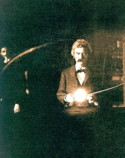 Mark Twain pomaže pri pokusu Nikoli Tesli (u pozadini)