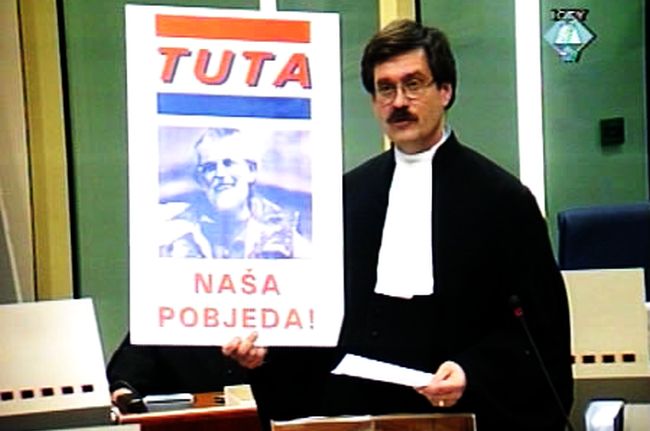 Sudeći prema višesatnom povijesno-politološko-sociološkom predavanju koje je potkraj prošloga tjedna održao u sudnici Haaškoga tribunala, Slobodan Praljak nije naumio dokazivati vlastitu nevinost i nepovezanost sa zločinima nad nehrvatskim življem u tzv. Hrvatskoj Republici Herceg-Bosni, nego se odlučio za multimedijalnu obranu Republike Hrvatske i njezine nekadašnje političke vrhuške od haaške optužbe o udruženom zločinačkom pothvatu čiji je cilj bilo pripojenje jednog dijela Bosne i Hercegovine: kako nas uči prvostupanjska presuda Tihomiru Blaškiću – koja je iznosila četrdeset i pet godina zatvora i koja je bila takva zahvaljujući tome što su Blaškić i njegov odvjetnik Anto Nobilo uglavnom branili Franju Tuđmana i Gojka Šuška – prilično je izvjesno da Praljkova obrambena strategija vodi izravno na dugogodišnju robiju, ali ovdje se nećemo baviti rečenim evidentnostima, jer optuženik ima pravo da se brani na svaki zamisliv način i da pritom poduzima sve za što misli da mu može biti od pomoći.