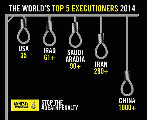 Prema podacima ove ugledne međunarodne organizacije za ljudska prava, u svijetu je prošle godine na smrtnu kaznu osuđeno najmanje 2.466 osoba, što je povećanje za 28 posto u odnosu na 2013. godinu. Države koje najviše osuđuju na smrt su Iran, Saudijska Arabija, Irak i Sjedinjene Američke Države, dok se za Kinu, gdje je navodno bilo više smaknuća nego u svim nabrojenim državama zajedno, ne zna točna brojka, jer su ti podaci državna tajna. Broj osuda skočio je u 2014. godini za više od pet stotina u odnosu na godinu prije, uglavnom zato što su Egipat i Nigerija, katkad i na masovnim suđenjima, izrekli stotine smrtnih kazni.