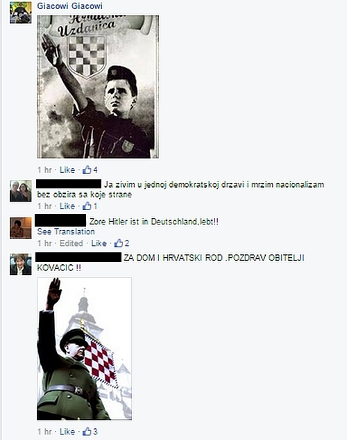 U pitanju je cijeli niz ovjekovječenih nacističkih pozdrava. Tek nešto manje nego ova fotografija, šokantne su poruke podrške koju je za fotografiju Kovačić dobio na svom Facebook profilu.