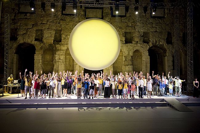 U Aristotelovu liceju, jednoj od tri najstarije antičke gimnaziji, uz zalazak sunca igrao je peripatetički “Rhesus” po Euripidu, u kojem je Katerina Evangelatos ispreplela desetu knjigu Homerove Ilijade s Aristotelovim tekstovima.