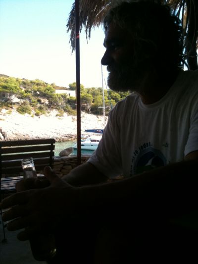 Ovo je Senko Karuza, kuhar, pisac, pustinjak i jebivjetar. Dao je četiri boce vina, narezao malo sira i servirao ga s maslinama. Vikao je usput na nekog bogatog Rusa, koji je doplovio skupom jedrilicom i tražio da mu se na ribu s gradela stavi malo ulja i češnjaka. Rus je bio manji od makovog zrna.