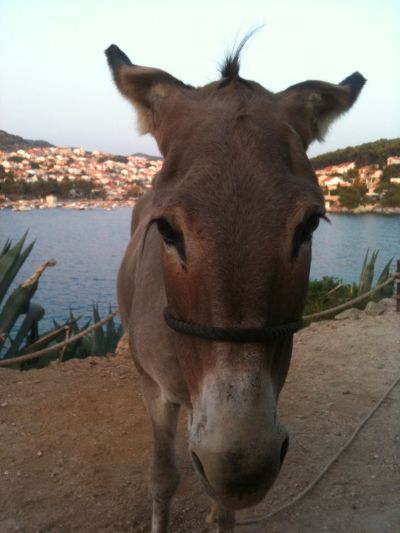 Ovo je Mercedes. Ona je magarica. Vezali su je konopom jer se unosila turistima u facu dok jedu svoje romantične ručke i večere. Mercedes je uglavnom mirna kao Budha, ali nekad njače. Oprez, naoružana je zubima i kopitom. Mercedes je dobro društvo.