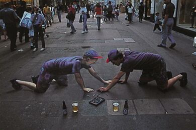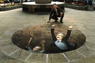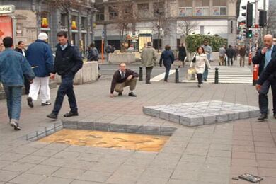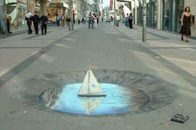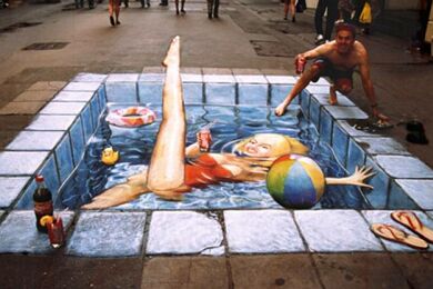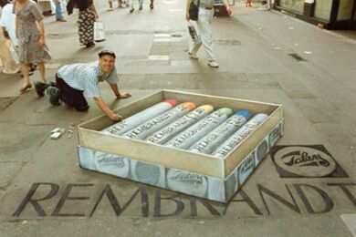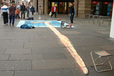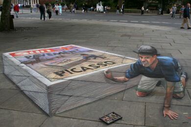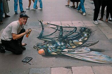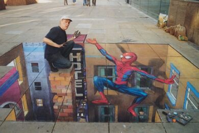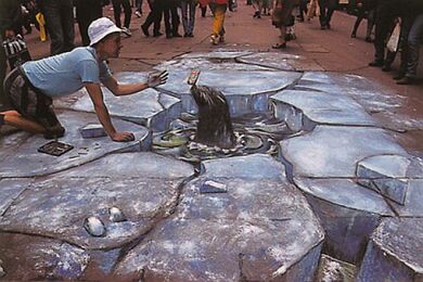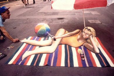 Već desetak godina Julian Beever putuje svijetom i pločnike metropola ocrtava nečim što nazivamo "anamorfozom" (stvaranje optičkog privida zbog kojeg plošni predmeti dobivaju treću dimenziju), a do sada je, osim rodne Velike Britanije, posjetio Njemačku, Austriju, Sjedinjene Američke Države, Francusku, Australiju, Nizozemsku i Belgiju. Njegovo umijeće primijetile su brojne svjetske kompanije koje ga unajmljuju za pojedine promidžbene radove (pogledaj nacrtani laptop).
